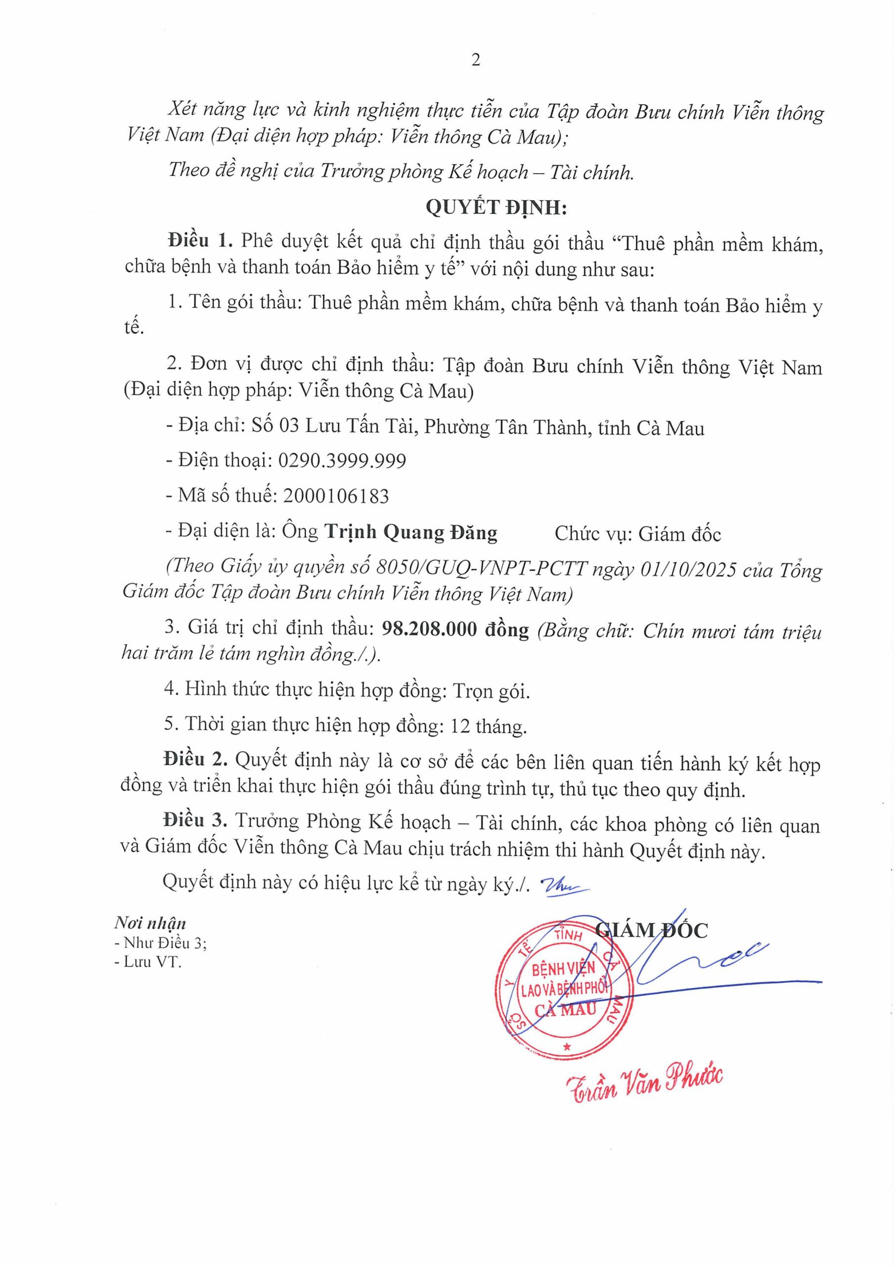 Skip to contentTrang chủ » Thông Báo » QUYẾT ĐỊNH – Phê duyệt kết quả chỉ định thầu gói thầu “Thuê phần mềm khám, chữa bệnh và thanh toán Bảo hiểm y tế”
