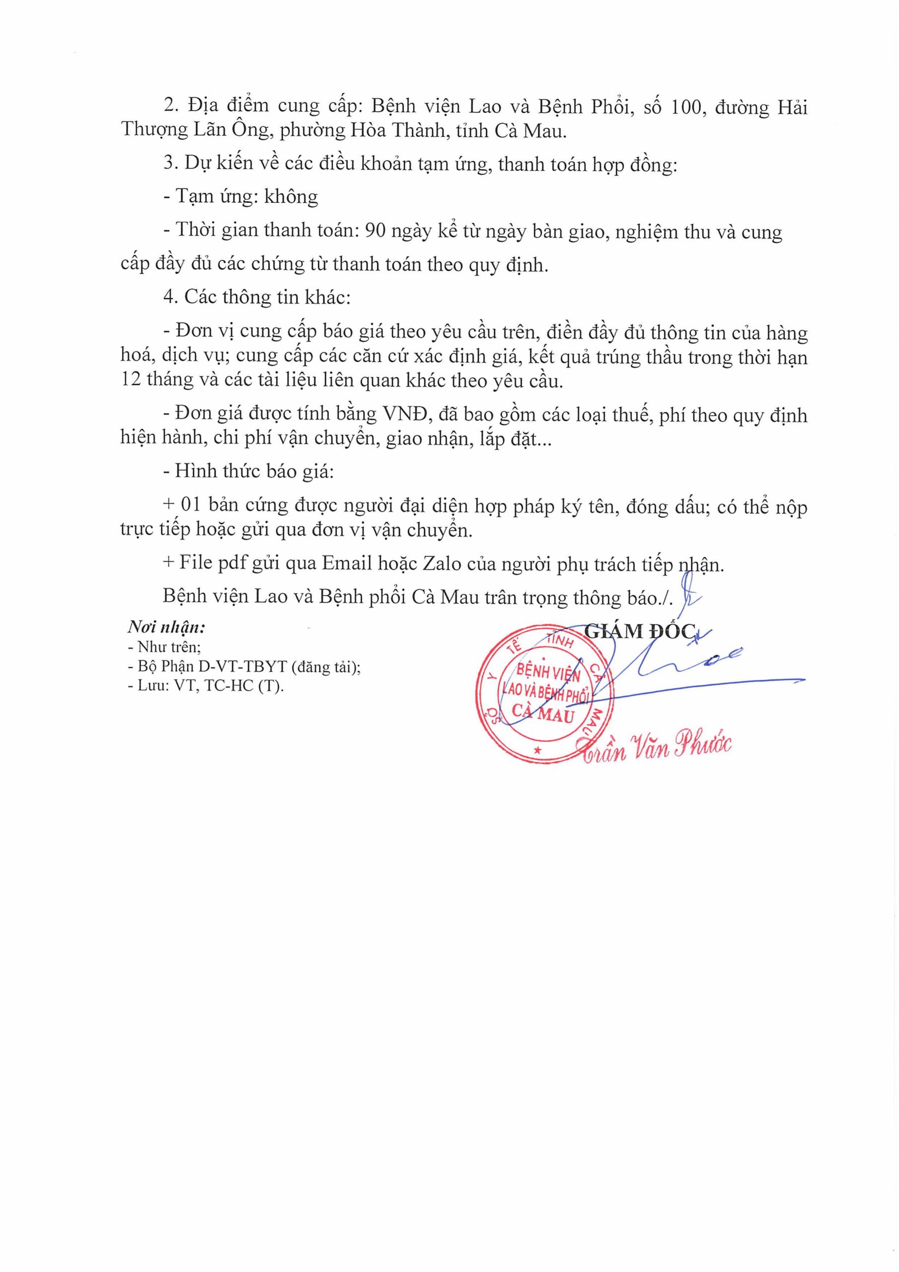 Thông BáoYêu cầu báo giá – Cung cấp vật tư y tế cho hoạt động xét nghiệm Xpert tầm soát Lao kháng thuốc năm 2025